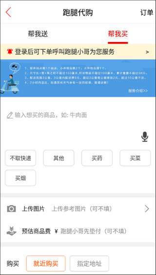 4、还可以使用跑腿代购功能,下单呼叫小哥为您服务。