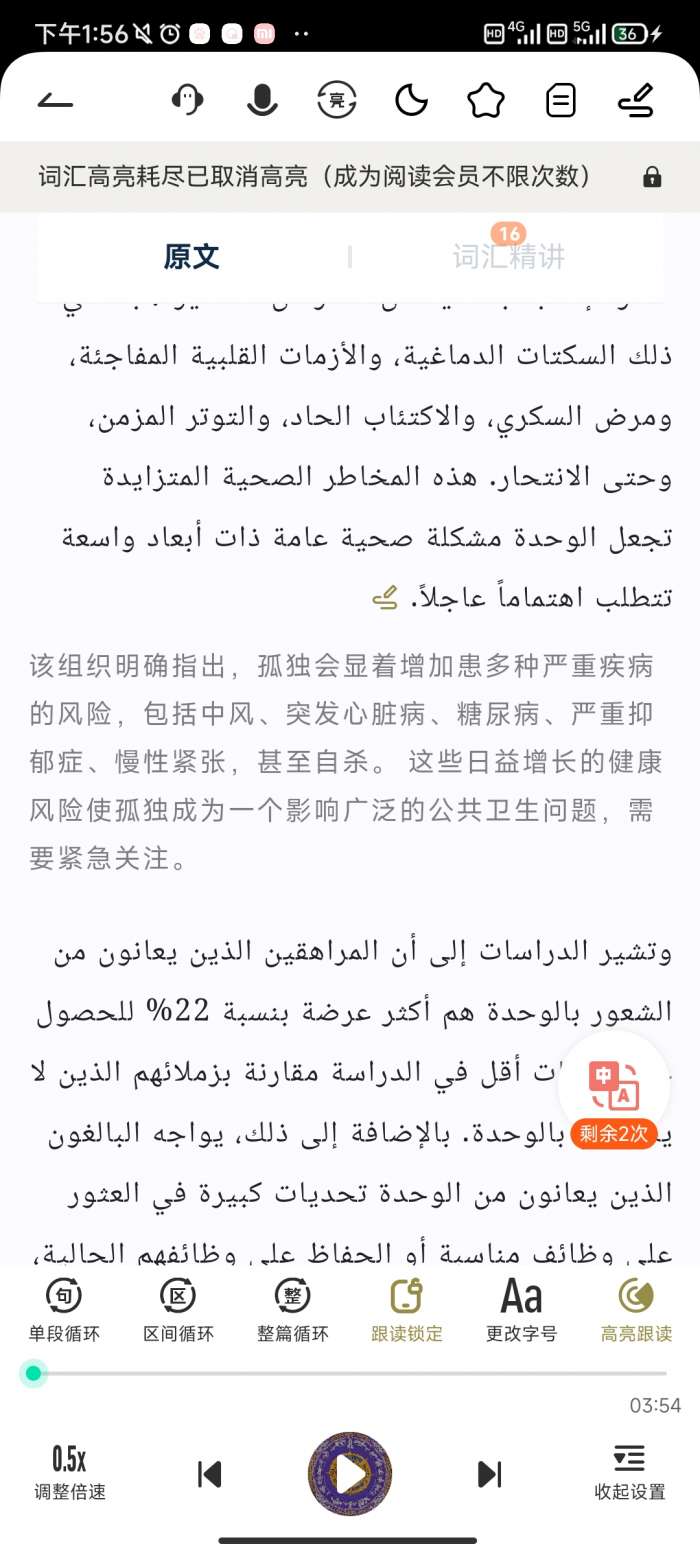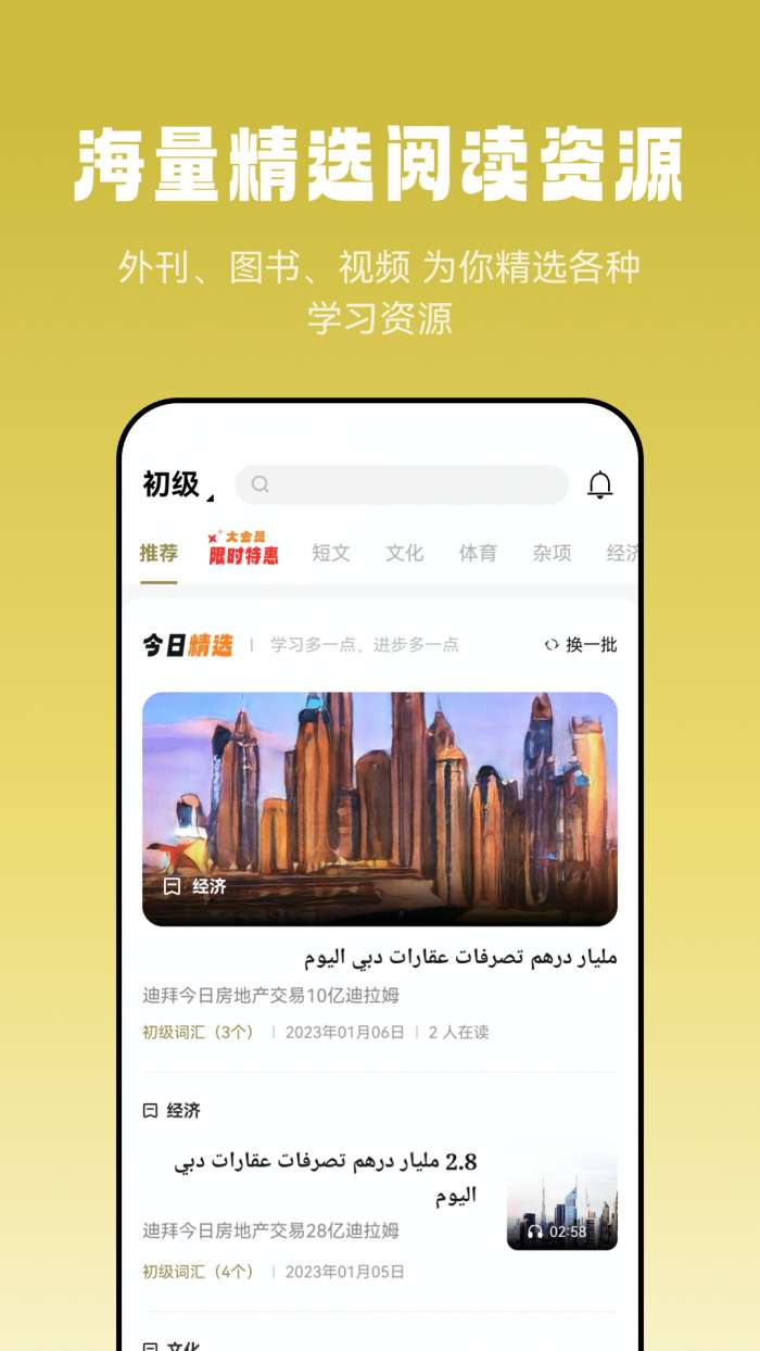 2、在这里就能够进行文章阅读,软件也可以提供不同的阿拉伯语文章资源。