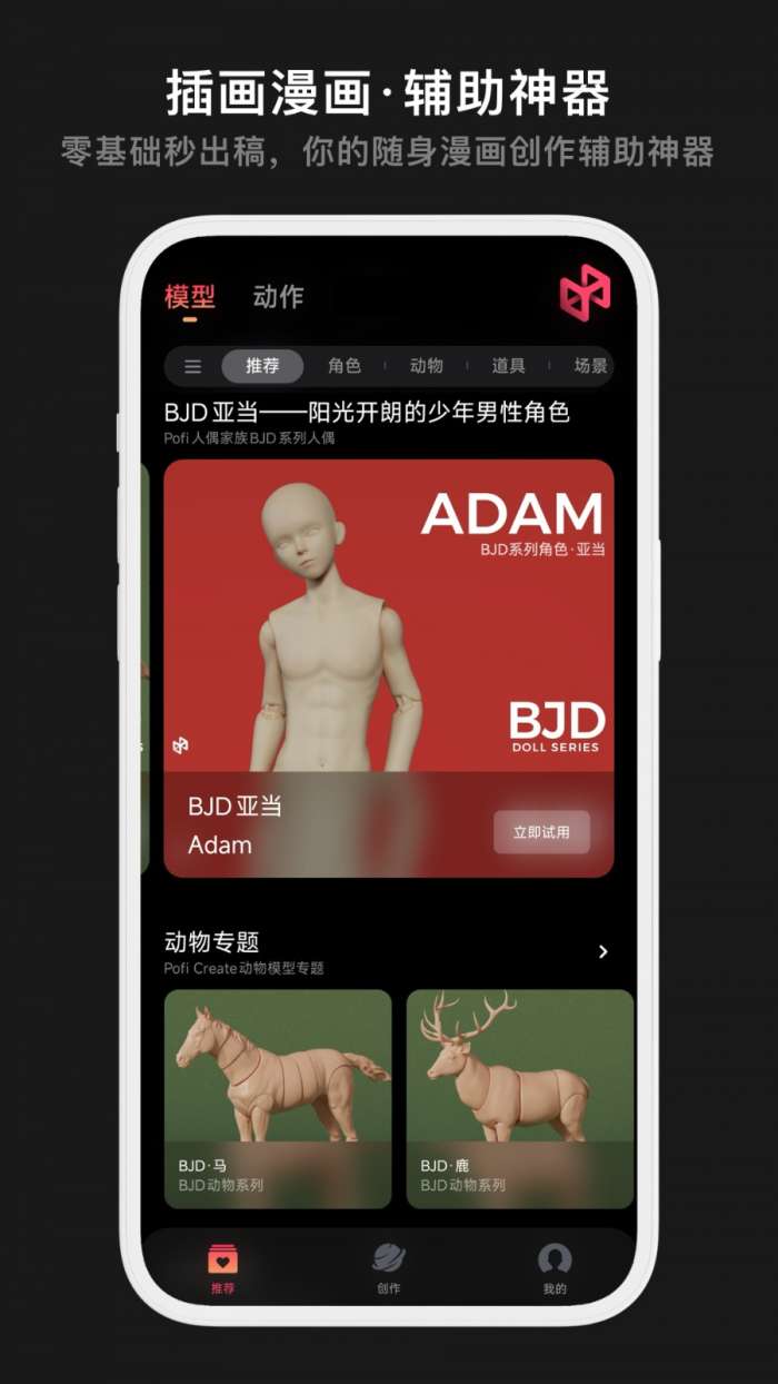 Pofi无限创作是一款专业移动端3D创作工具,专为插画、漫画、动画爱好者量身打造。内置海量精品素材库,精选素材即可实时编辑创作,适配多创作场景,素材挑选便捷高效,轻松打造专属原创作品。平台汇聚丰富人物角色、各类道具资源,随心选用自由搭配组合,可参考可原创,操作简单零基础也能快速上手。免费版自带专业光影工坊,支持自定义调节光影参数,模拟专业摄影效果,完美呈现作品细节质感。无论业余兴趣创作还是专业灵感设计都十分合适,创作爱好者快来下载开启你的 3D 创意之旅!