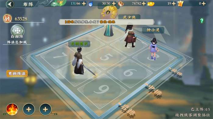 2、建议防御型侠客放置在前排1-3号位,更多的承受敌方的普攻回复怒气。
