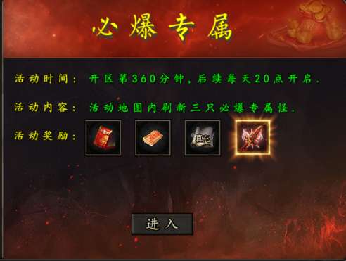 3、在开区的第360分钟内击败活动地图内刷新的三只专属怪即可获得奖励,该活动后续每天20点开启。