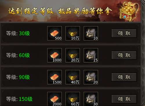 6、达到指定等级就可以获得灵符、元宝和充值卡,上限为500级。