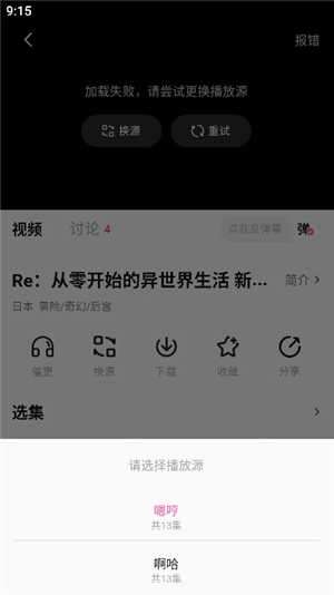 3、换源后通常可正常播放,若仍无法播放请向官方反馈。