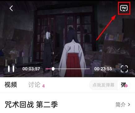 2、待播放界面右上角有投屏按钮,点击即可使用投屏功能。