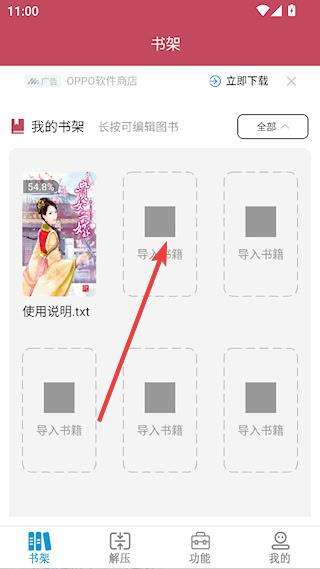 1、打开Epub阅读器APP,首页可以导入书籍。