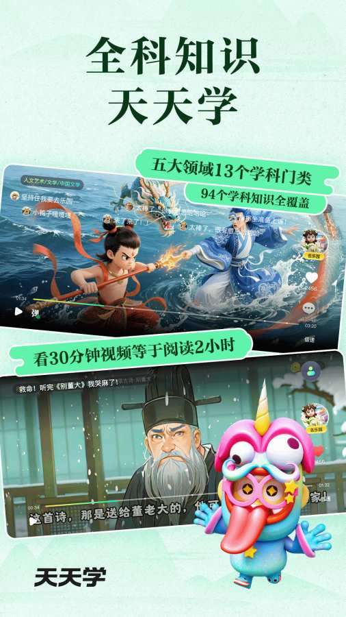 天天学app是一个综合性的汉语学习平台,提供广泛的内容,包括单词、句子、古诗词、历史等。它可以充分满足用户的学习需求,使他们随时随地学习;该应用程序可以根据学生的成绩和学习进度提供个性化学习,有效提高汉语学习效率;同时,它还包含大量的文本、成语故事、古诗词等。用户可以通过学习体验中国文化的博大精深,欣赏诗歌的魅力,提高文化素养;还可以通过语音阅读和听写练习等方法提高学习兴趣,激发学习动机;下载每日学习资料,有效提高文学素养和语言能力。