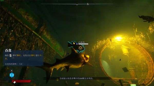 4、玩家可以尝试探索沉船,或者在海里来回游泳,试图找到其他鱼和生物来吃。