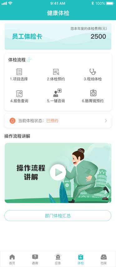 3、进入体检页面,您可以查看检查流程的介绍,并在线预约检查服务。