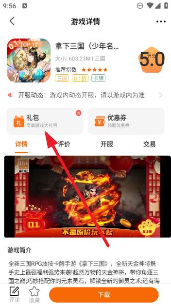 3、点击游戏进入详情界面,这里就有游戏礼包可以领取啦,有的游戏还有免费的优惠券赠送。