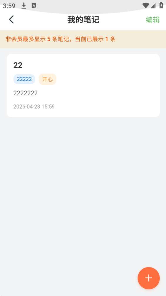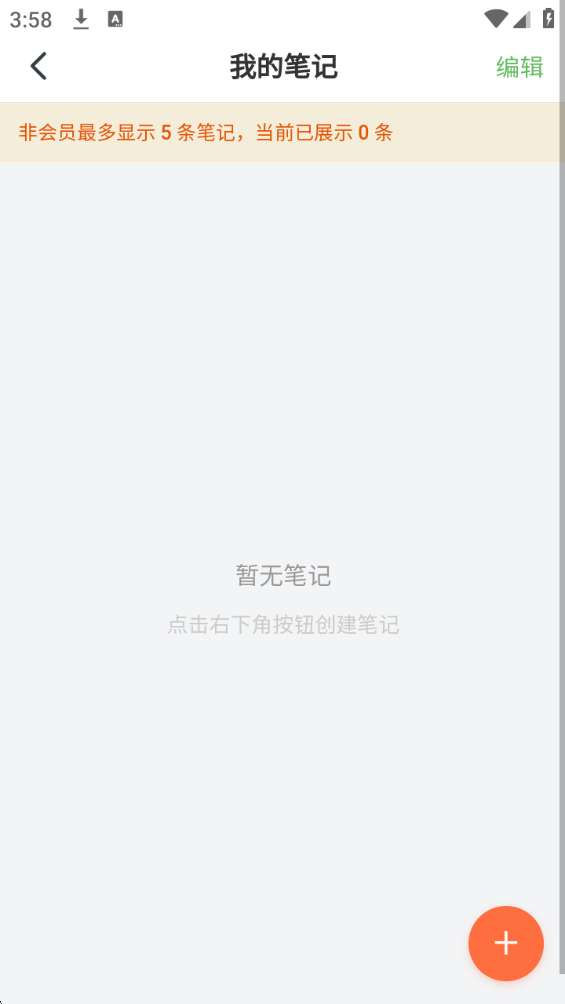 3、然后进入到“我的笔记”管理菜单界面,找到右下角“+”样式按钮点击进去。