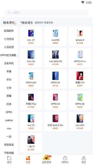 3、点击旧机还钱,可以查看各类型旧机回收。
