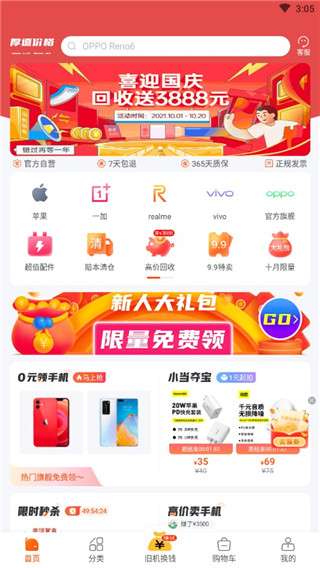 1、直接在本站下载软件安装后打开,进入首页,可以查看各大品牌回收。