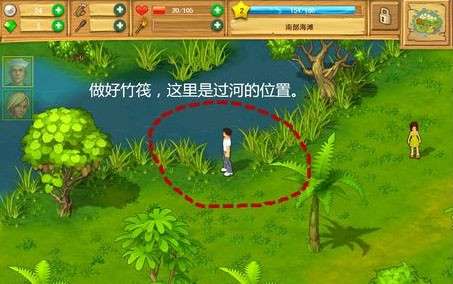 原材料在海岸边能找到,绕一圈就可以了,过河的点就在海岛的左上方位置。