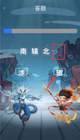 2、点击下方【辙】字,填入【南辕北辙】的空缺处。
