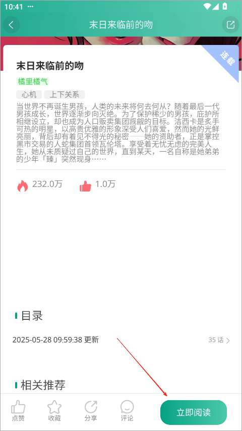 2、找到想看的漫画后,选择“立即阅读”