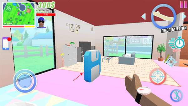 4、进入游戏后可以看到教程,滑动摇杆控制移动,使用箭头可以切换武器,点击手机可以订购汽车。
