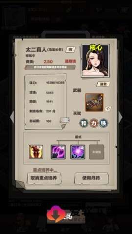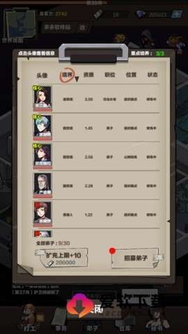 1、游戏的核心在于招募资质突出的弟子,他们是你展开各种训练和任务的关键。只有优秀的弟子,才能够助你走向成功。