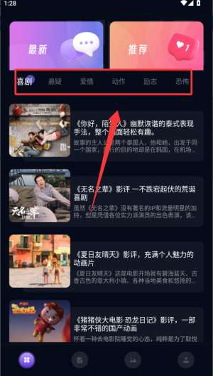4、然后点击底部的菜单功能,这是电影评论。