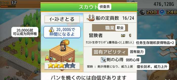3、需要招募各种职业的船员为自己工作。