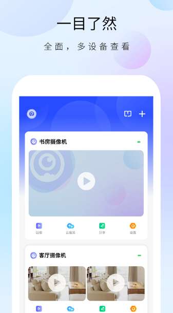 1、【远程实时视频监控与视频分享】简单几步完成设备绑定,手机实时查看监控画面可分享给亲友同时观看。