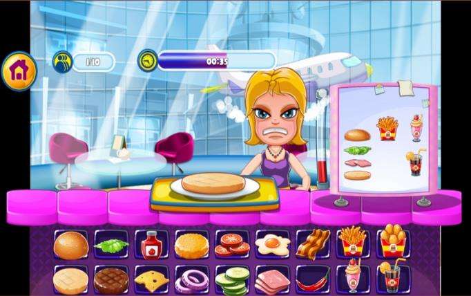 1、在这里根据游戏的提示,快速地完成任务,比方说制作类的,可是们的点菜单会显示在右侧的白板上。