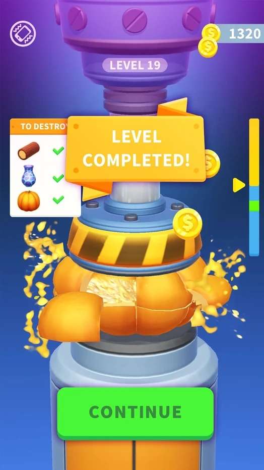 Press Antistress在这个游戏中,会提供一个比较大的机械,他们的脸色一些东西也可以叫做液压机,在这里玩,他们可以不断的解锁一些新的物体,放置在操作版面上,然后液压机就会将这些东西进行压碎,玩这款游戏比较的放松,能够释放大家的压力,之后的任务就是开始慢慢的累积自己的挑战经验,后续用自己获得的金币,具体所更多的物品以及给液压机进行升级。