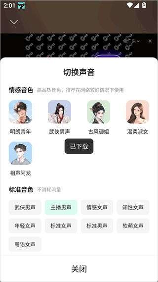 3、切换时,需要下载音频源,下载成功后,可以成功切换。