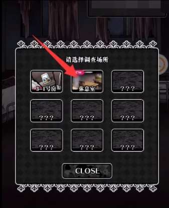 5、在调查过程中,从给出的选项里点击选择“休息室”这一调查场景,继续推动游戏剧情发展。