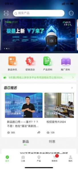 天地安防app是一款集采购、推广、服务、管理为一体的一站式安防服务平台。平台致力于成为广大合作伙伴的安全助手,为客户创造价值。该软件提供了丰富多样的产品资源,您可以自由过滤并轻松在线下订单。您还可以一键查询产品的价格参数,帮助您更好地了解产品。通过参与平台的活动,您可以享受折扣,并随时下单。该平台还为用户提供了各种工具,帮助他们方便地使用它。设备的录像容量可以在线计算,用户可以方便地咨询他们的客服。