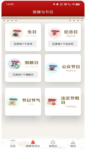 2、软件中可以添加各种重要日期,软件会自动提醒。