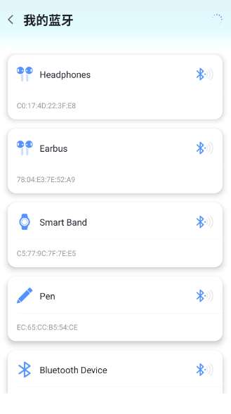 查找蓝牙app是功能强大的智能蓝牙耳机设备控制软件,为用户提供智能控制中心。用户快速配对自己的耳机设备,方便用户快速配对,轻松识别所需蓝牙耳机型号,快速连接,用户快速配对,轻松管理耳机设备,实现设备实时。平台还支持用户按铃寻找耳机,方便选择蓝牙耳机的专业音效,通过多种音效一键切换场景,享受沉浸式听觉盛宴。另外,通过寻找查找蓝牙app,用户可以清楚地看到耳机的剩余电量,掌握相关电量警告,进行智能健康的充电,有需要的用户马上来本站下载使用吧。