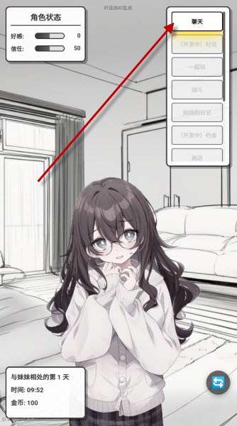 3、走完流程后,点击右上角聊天按钮即可对妹妹开始对话。