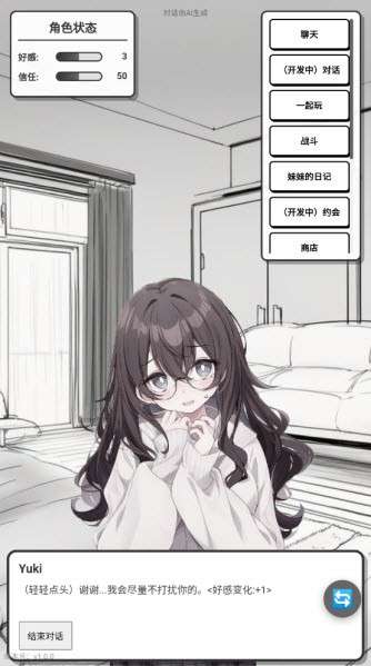 4、根据你的行为可以影响Yuki的好感度以及情绪。