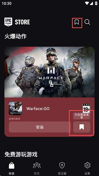 1、打开EPIC,找到你感兴趣的游戏,在“安装”按钮旁点击收藏图标。