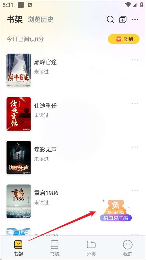 1、打开塔读小说应用程序,打开后,您将看到“每日无广告”标志。点击进入。