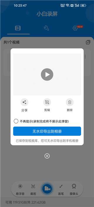 4、视频分享:录制后,用户可以在社交媒体平台上一键分享视频或将其保存在本地。