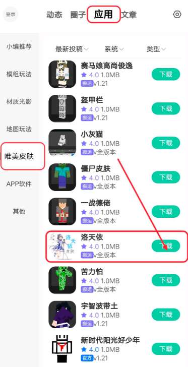 1、先在唯美皮肤分类中找到自己喜欢的皮肤。