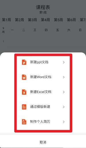 4、点击页面下方的加号按钮可新建PPT、Word、Excel等文档,也支持通过模板创建或快速制作简历。