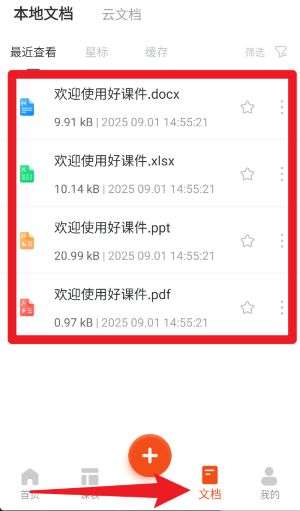 5、在“文档”页面中可查看已保存的本地文档,支持多种格式浏览和编辑管理,如docx、xlsx、ppt等。