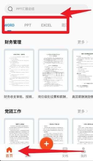 1、在首页顶部输入关键词或选择Word、PPT、Excel分类标签,即可快速浏览各类文档模板并进行筛选。