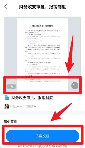 2、点击感兴趣的文档后可进入预览页,支持左右滑动阅读页面内容,并通过底部按钮下载完整文件资料。