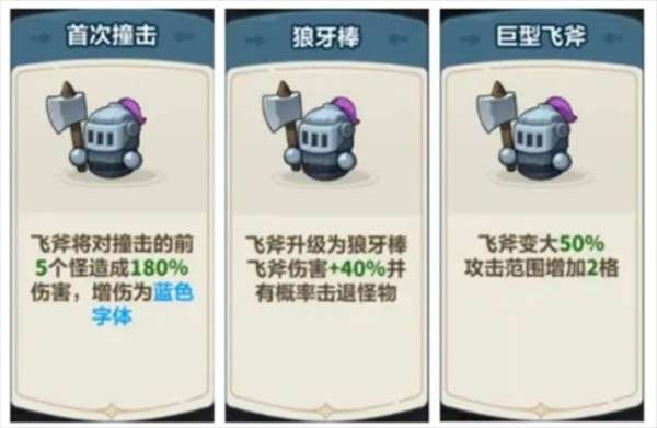 2、【三板斧】:城墙血量每降低10%,所有骑士迅速连扔3次飞斧。