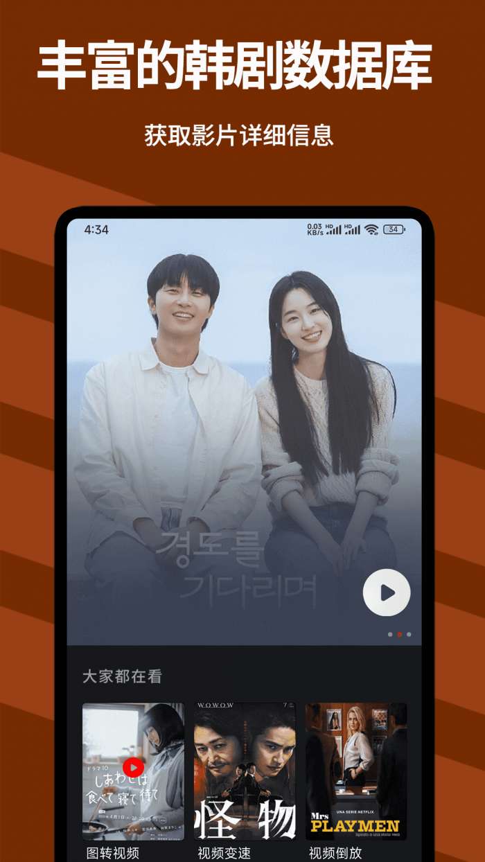 韩剧影视大全让你告别剧荒,一秒上头! 海量资源,快人一步!热门新剧、经典大片、独家网剧,无需等待,抢先畅看。万部影视,全部免费,让你一次看过瘾! 【看不完的精彩】 每日更新热播指南、深度解析,从火爆全网到小众神作,我们为你精准扫雷、贴心推荐。爆笑解说让你快速GET亮点,丝滑混剪点燃追剧热情。 【看不腻的花样】 同一部剧,收获N倍快乐!除了正片,更有高能解说、CP混剪、幕后揭秘、深度影评… 从入门到精通,满足你的所有好奇。 你的私人影视向导已上线! 智能算法,懂你所爱;个性片单,定制专属你的视听盛宴。无论你是倍速追剧党,还是细节考古派,这里都有你的专属频道。