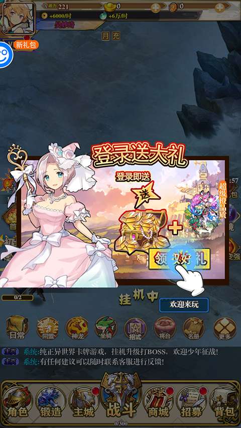 1、进入游戏后就可以领取登入大礼。