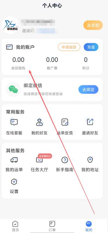 3、最后在我的页面中还提供了账户管理、在线客服、我的运单和任务大厅等服务。