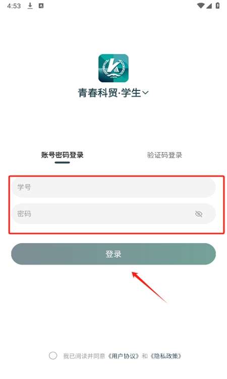 3、进入 登录页面后,可以根据自己的需求选择不同的登录方式,使用账号密码登录,需要输入学号和密码点击登录即可。