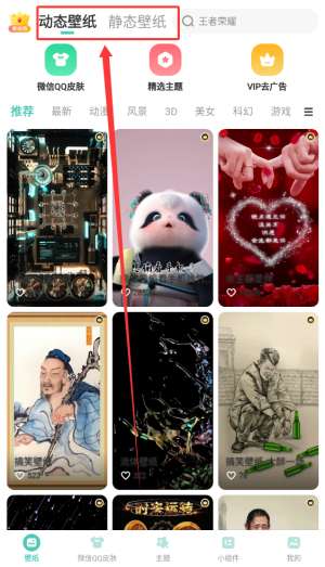 3、壁纸部分提供两种壁纸资源:动态效果和静态图像,使用户可以根据自己的喜好轻松选择和设置。