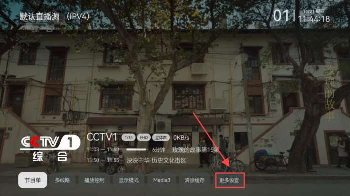 1、进入软件后,点击遥控器OK键,选择下方“更多设置”。