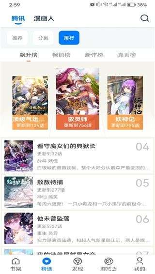 1、首先推荐板块,两大热门漫画平台,腾讯以及漫画人,超多热门漫画抢先观看。