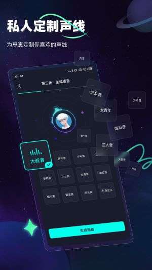 2. 进入自定义语音界面后,您可以根据个人喜好从多种语音类型中进行选择,单击“生成”按钮,快速生成专属语音。